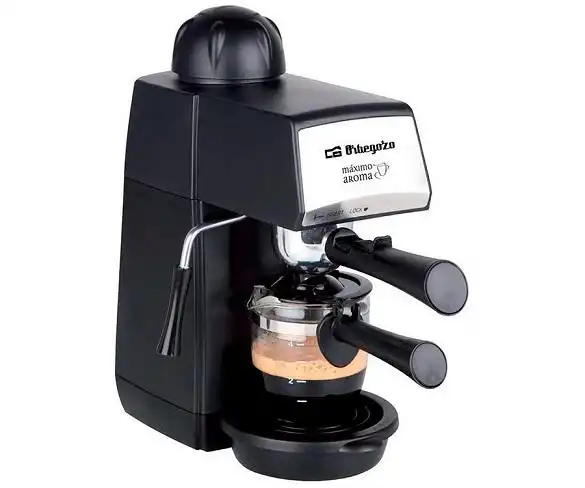 Cafetera expresso Orbegozo EXP 4600 en color negro, 870W de potencia y 5 bares de presión, vaporizador para capuccinos, jarra de cristal incluida, detalles en acero inoxidable