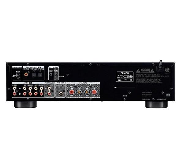 POTENTE AMPLIFICADOR INTEGRADO DE 70 W Alimenta tus altavoces con el amplificador integrado PMA-600NE Denon. Diseñado con la excepcional tecnología de amplificación de Denon, el PMA-600NE proporciona una potencia de 70 vatios por canal (4 ohmios, 1 kHz, THD 0,7 %). Este amplificador integrado es compatible con una gran variedad de altavoces e impedancias para garantizar una estabilidad operativa.CIRCUITO PUSH-PULL SENCILLO AHC (ADVANCED HIGH CURRENT) Disfruta de un sonido potente y de una reproducción musical detallada y precisa. El PMA-600NE incorpora transistores AHC que ofrecen una capacidad de alimentación eléctrica entre dos y tres veces superior a la de los transistores de potencia de audio convencionales. El elogiado circuito push-pull sencillo AHC de Denon que integra el amplificador discreto del PMA-600NE garantiza la obtención de un sonido potente con una gran fidelidad musical.COMPONENTES DE AUDIO DE ALTA CALIDAD Los ingenieros de Denon han concebido el circuito de amplificación del PMA-800NE de modo que garantice una respuesta en frecuencia de hasta 100 kHz en funcionamiento. El circuito de volumen suprime el ruido en el amplificador, proporcionando un sonido de alta resolución. El PMA-800NE permite reproducir una amplia gama de fuentes de audio de alta resolución con control de tono y alta potencia.Integridad del diseño con componentes cuidadosamente seleccionados Los más de 100 años de experiencia de Denon diseñando componentes de audio de alta gama garantizan que sus productos han sido sometidos a rigurosas pruebas. La estética general, la calidad del sonido y la integridad del diseño del PMA-800NE y sus componentes de alta fidelidad están hechos para durar.Compatibilidad con Bluetooth y conectividad digital Amplía tu experiencia auditiva accediendo a un número casi ilimitado de fuentes. Empareja el PMA-600NE por Bluetooth con tu dispositivo inteligente u ordenador y escucha tu música favorita de forma inalámbrica. Conecta tu televisor, reproductor multimedia, ordenador o cualquier fuente digital a través de las entradas digitales ópticas y coaxial y disfruta de una excepcional calidad de sonido gracias al DAC integrado.Entradas digitales ópticas y Coaxial El PMA-600NE está provisto de dos entradas ópticas y una entrada coaxial y es compatible con señales PCM de hasta 192 kHz/24 bits. Estas entradas digitales contribuyen a mejorar la calidad del sonido de televisores, reproductores multimedia, Blu-ray, etc. También permiten disfrutar en el ordenador del sonido de alta resolución de una fuente de audio.Modo Analógico El modo analógico permite que el PMA-600NE funcione como un amplificador puramente analógico, desactivando las entradas digitales y el Bluetooth mientras se reproducen fuentes analógicas. Usa el modo analógico para desactivar la fuente de alimentación digital específica y detener el funcionamiento de los circuitos de entrada digital y Bluetooth con el fin de evitar cualquier efecto de las altas frecuencias sobre la sección analógica del PMA-600NE. Disfrutarás de tus fuentes analógicas favoritas con una máxima claridad y una reproducción detallada.Ecualizador de Phono MM El PMA-600NE incluye un ecualizador de phono que permite reproducir desde fuentes con cápsulas MM. Este ecualizador de phono tiene una ganancia elevada y, a diferencia de los bucles que se producen en otros diseños de circuitos impresos y que alteran la calidad del sonido, el diseño simple y directo del ecualizador de phono del PMA-600NE mejora considerablemente el sonido.Transformador principal con cableado independiente Con el fin de eliminar las interferencias y mantener una excepcional calidad de sonido, el transformador principal del PMA-600NE tiene cables en espiral independientes para los circuitos de audio y de control. Un microprocesador integrado cuenta con un modo de parada para mejorar aún más la calidad del sonido.Modo de parada del Microprocesador El microprocesador del PMA-600NE cuenta con un modo de parada que detiene automáticamente todas las operaciones del microprocesador cuando éste no es necesario para la reproducción. Deteniendo la oscilación del reloj del microprocesador durante estos momentos de escucha, la señal de audio se protege de los ruidos externos y se mejora la calidad del sonido.Construcción separada en niveles de señal El circuito de audio emplea un chasis con construcción separada en niveles de señal (SLDC) desarrollado por Denon para garantizar que las delicadas señales musicales se amplifican y transmiten fielmente a los altavoces. El resultado es una calidad de sonido ejemplar, en todo momento.Más de 100 años de primicias en tecnología de audio Fundada en 1910, Denon tiene una larga historia de primicias en tecnología de audio: desde ser el primer fabricante de productos electrónicos de audio de Japón hasta producir los primeros reproductores de CD comerciales y el primer receptor AV con Dolby Atmos del mundo. Este compromiso con la investigación y desarrollo de audio te garantiza que disfrutarás de todas tus experiencias auditivas con la más avanzada tecnología y la más alta calidad.