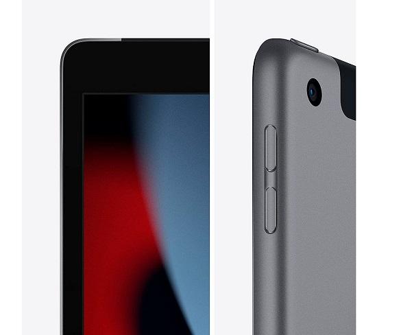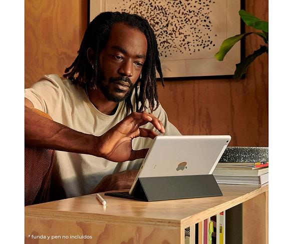 Tablet Apple iPad (9ª generación) en color gris (Space grey) con pantalla de 10.2" Quad HD+, 2160 x 1620 píxeles, iPadOS, WiFi, CPU Hexa-core hasta 2.65GHz, 3GB RAM + 256GB de almacenamiento interno, cámara trasera de 8MP y frontal de 12MP, batería de 8.557 mAh y conector lightning.