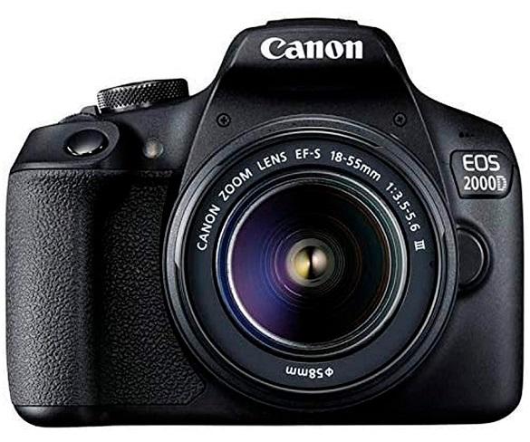 Canon EOS 2000D + EF-S 18-55mm f/3.5-5.6 III. Tipo de cámara: Juego de cámara SLR, Megapixeles: 24,1 MP, Tipo de sensor: CMOS, Máxima resolución de imagen: 6000 x 4000 Pixeles. Sensibilidad ISO (max): 6400. Intervalo de longitud focal: 18 - 55 mm. Velocidad máxima del obturador: 1/4000 s. Wifi. Tipo HD: Full HD, Máxima resolución de video: 1920 x 1080 Pixeles. Diagonal de la pantalla: 7,62 cm (3\"). tipo de visor de imágen: Óptico. PictBridge. Color del producto: Negro