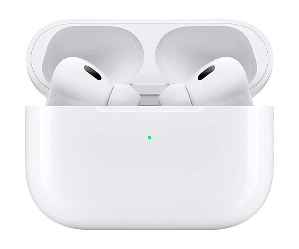 Auriculares InEar True Wireless Apple AirPods Pro (2ª generación) en color blanco con micrófono integrado para llamadas con manos libres con cancelación de ruido, conectividad Bluetooth 5.3, estuche con hasta 30h de autonomía con conector lightning y adaptador a USB-C