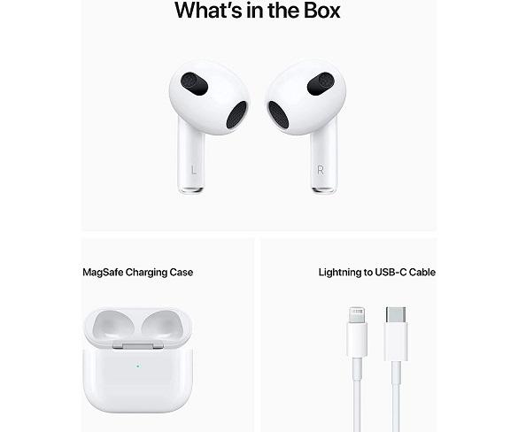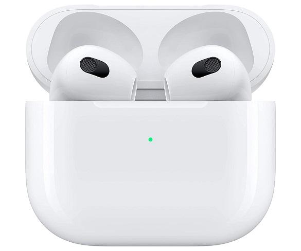 Auriculars InEar True Wireless Apple AirPods (3a generació) en color blanc amb micròfon integrat per a trucades amb mans lliures amb cancel·lació de soroll, connectivitat Bluetooth 5.0, estoig amb fins a 30h d'autonomia