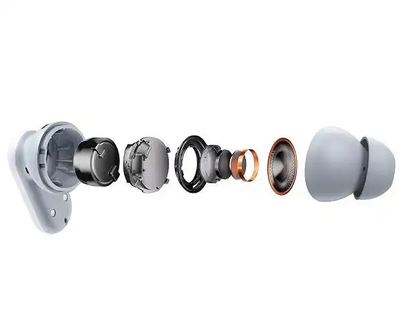 | Tamaño | Peso (auricular): 4,3 g ± 0,1 g Peso (auriculares + estuche de carga): 46,7 g ± 0,2 g Dimensiones (auricular): 28,5 mm * 20,2 mm * 23 mm Dimensiones (estuche de carga): 68,9 mm * 36, 6 mm * 28,2 mm |