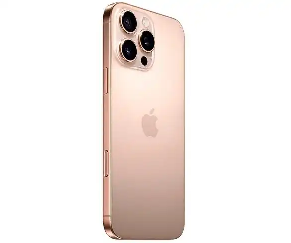 Smartphone Apple iPhone 16 Pro Max en color Titanium Desert con pantalla de 6.9" OLED 120Hz Full HD+, 1320 x 2868 píxeles, 8GB RAM DDR5 + 512GB NVMe y CPU Hexa-core hasta 3.8GHz, iOS, 5G, GPS, SIM + eSIM, WiFi 6E, bluetooth 5.3 y NFC, cámara trasera cuádruple de 48MP y frontal de 12MP, batería de 4.676 mAh con carga rápida (25W + Qi 15W) y conector USB-C