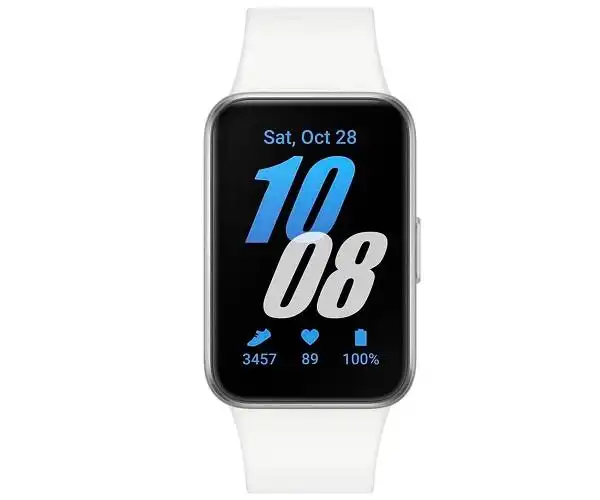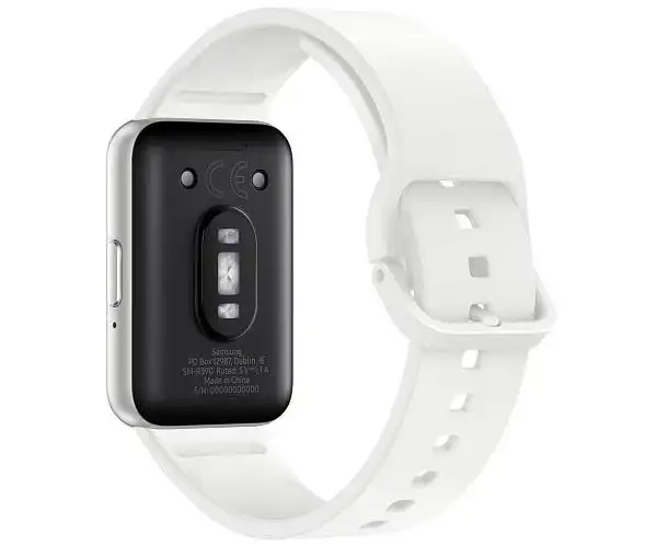 Polsera d'activitat Samsung Galaxy Fit3 acabada en color plata/blanc, pantalla de 40 mm, 1.6" AMOLED, bluetooth 5.3, amb acceleròmetre, baròmetre, sensor giroscòpic, sensor òptic de freqüència cardíaca, sensor de llum, realitza un seguiment de més de 10. revisar trucades i enviar missatges de text directament des del canell ia més compta amb fins a 13 dies de bateria amb una sola càrrega.