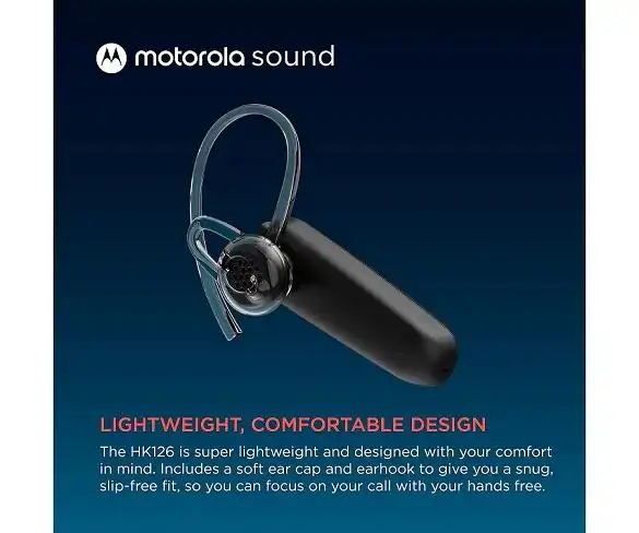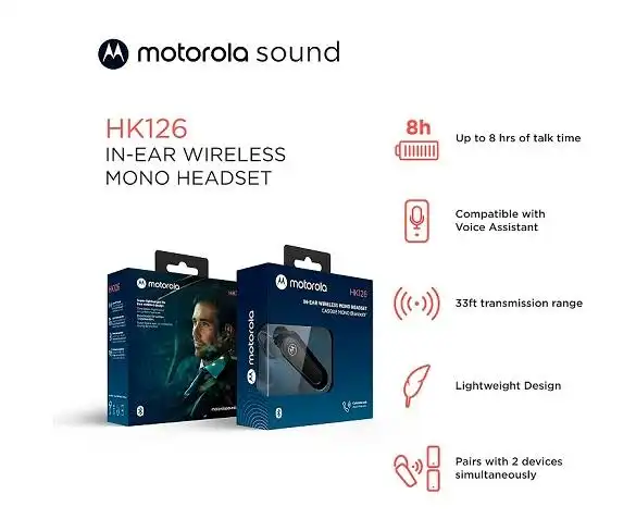 Auriculares Motorola Sound Bluetooth HK126, inalámbricos Mono Bluetooth, intrauditivos con 8 horas de tiempo de conversación, compatible con asistente de voz, se conecta a 2 dispositivos.