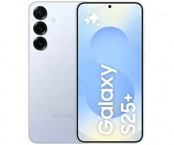 Smartphone Samsung Galaxy S25+ en color Blue con pantalla de 6.7" AMOLED 120Hz Quad HD+, 1440 x 3120 píxeles, 12GB RAM DDR5 + 512GB UFS 4.0 y CPU Octa-core (3nm), Android, 5G, GPS, Doble SIM / eSIM, WiFi 6e, bluetooth 5.3 y NFC, cámara trasera triple de 50MP y frontal de 12MP con una batería de 4.900 mAh con carga rápida (45W) y carga inalámbrica