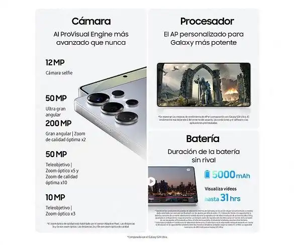 | Procesador | Qualcomm Snapdragon 8 Elite for Galaxy Octa-Core (3 nm) |