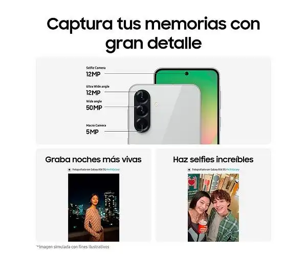 Galaxy A56 hereda tecnologías de cámara de sus hermanos mayores para ofrecer una experiencia que va más allá de los megapíxeles. Su sensor principal y la nueva cámara selfie capturan más colores y detalles incluso con poca luz. Además, su procesador de imagen con IA logra retratos con desenfoques de fondo más realistas, perfectos para destacar en tus RRSS.