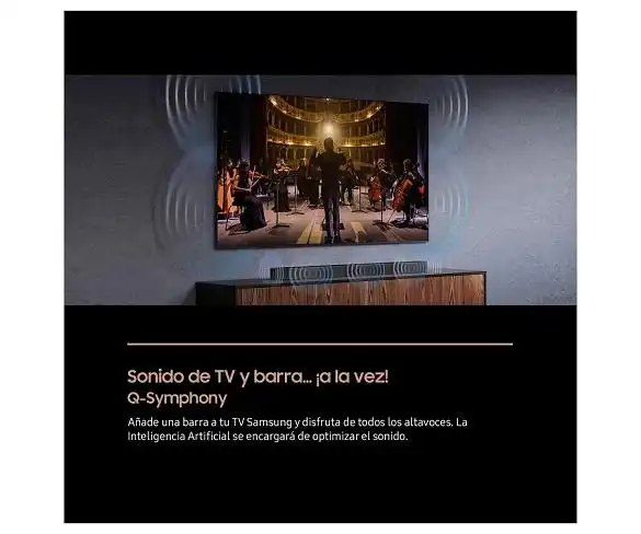 Amb Q-Symphony, la IA separa la veu i els sons de fons per reproduir-los a través del canal òptim. Gràcies a això, els diàlegs són més nítids i el so envolupant 3D més envolupant es reprodueix a través dels altaveus del televisor i la barra de so en completa sincronia.