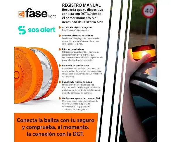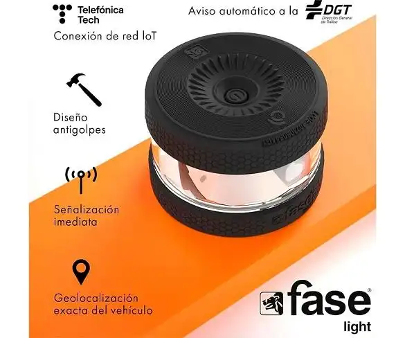 La balisa V16 Faselight és un dispositiu de senyalització d'emergència avançat, compacte i portàtil, dissenyat per augmentar la visibilitat i seguretat a la carretera. Resistent a l'aigua i fàcil d'usar, carcassa engomada per protegir-lo davant de caigudes. Emet una llum intermitent d'alta intensitat visible a llarga distància. Amb connectivitat IoT de Telefónica Tech, permetent la geolocalització i l'enviament d'alertes en temps real. S'hi inclou de manera gratuïta l'App Sos Alert amb multitud de funcionalitats.
