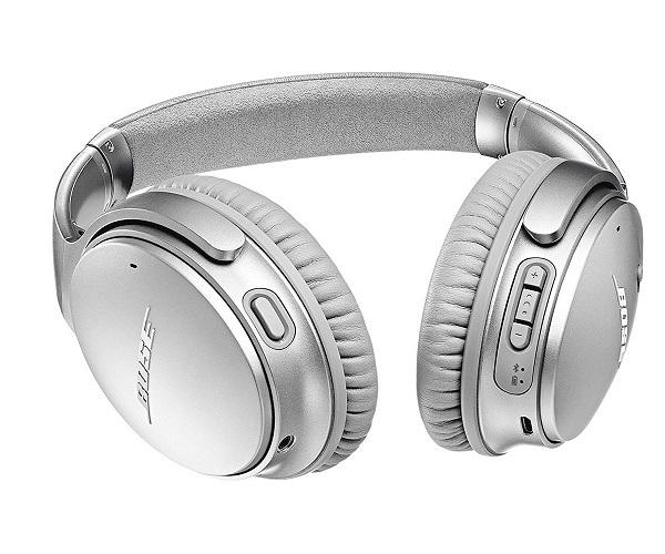 Auriculares inalámbricos BOSE QUIET COMFORT 35 II con diseño en color plata, tecnología Acoustic Noise Cancelling que mide, compara y reacciona constantemente ante el ruido exterior. Luego, lo cancela emitiendo una señal opuesta, cancelación de ruido regulable: usa el botón de acción para elegir uno de los tres ajustes, ecualización optimizada según el volumen: para obtener el mejor rendimiento a cualquier volumen, indicaciones de voz: te guiaremos en el emparejamiento Bluetooth, llamadas claras: oye y hazte oír, incluso cuando hace viento o hay ruido, hasta un máximo de 20 horas de autonomía, después, con una carga de tan solo 15 minutos, podrás usarlos durante otras 2,5 horas más.