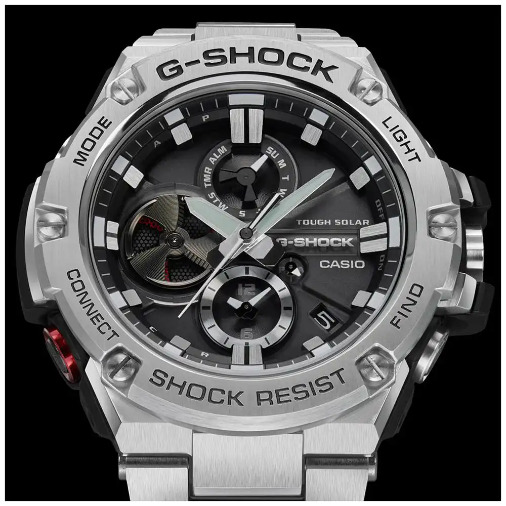Aquest rellotge marca G-Shock té una caixa Inox amb un diàmetre de 53.8 mm i compta amb una corretja de metall. Dins la caixa hi ha un mecanisme de Casio d'alta qualitat el qual està protegit per un vidre Mineral.