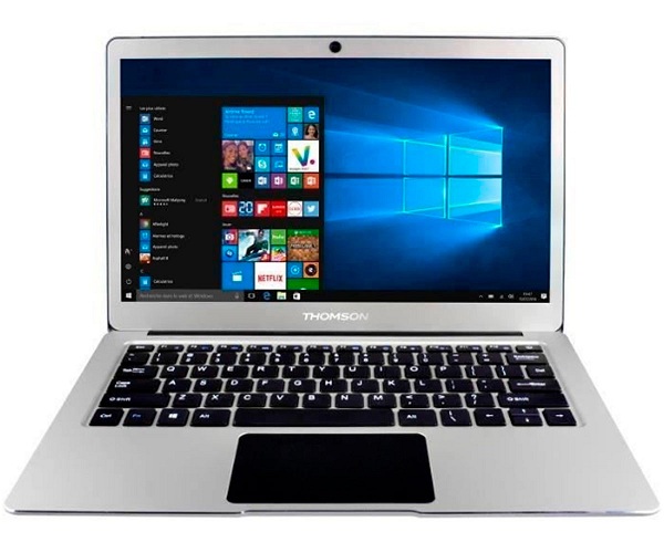 Ordenador portátil THOMSON SP-NEOX13.4RD32 con diseño en color gris, pantalla de 13.3 pulgadas LCD retroiluminada por LED con resolución FullHD de 1920 x 1080 píxeles, sistema operativo Windows 10 Home con arquitectura de 64-bit, procesador dual core Intel Celeron de 1.1 a 2.4GHz, unidad de memoria eMMC de 64GB, 4GB de memoria RAM, batería de 4.000mAh, conectividad inalámbrica WiFi 802.11n, Bluetooth 4.0, webcam VGA 0.3MPx, miniHDMI, ranura microSD y puertos USB 2.0 y USB 3.0 tipo A.